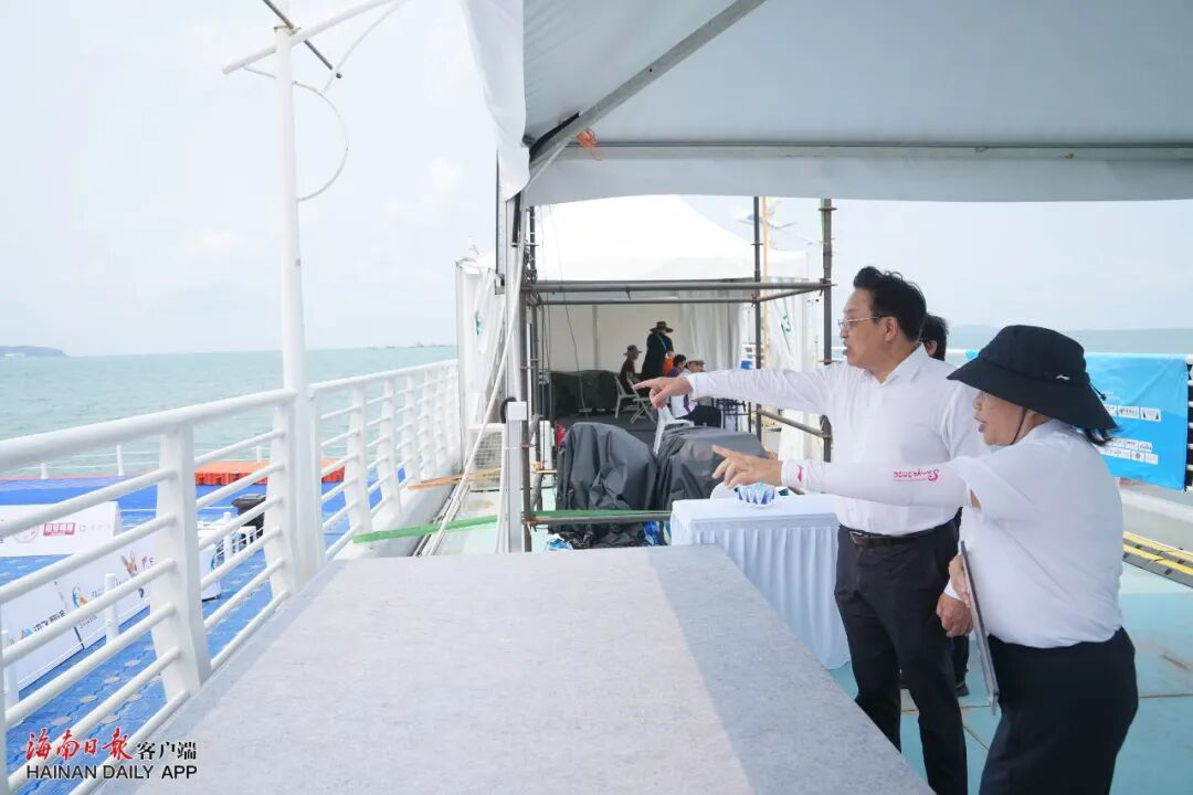 4月19日,省委书记冯飞在三亚检查第六届亚洲沙滩运动会筹备工作。