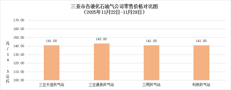 2.我市本周零售均价141.50元/14.5公斤.瓶(不含劳务费),环比持平,同比下降1.74%。2025年1-10月份瓶装液化气累计零售均价143.84元/14.5公斤.瓶,较2024年价格基本持平。